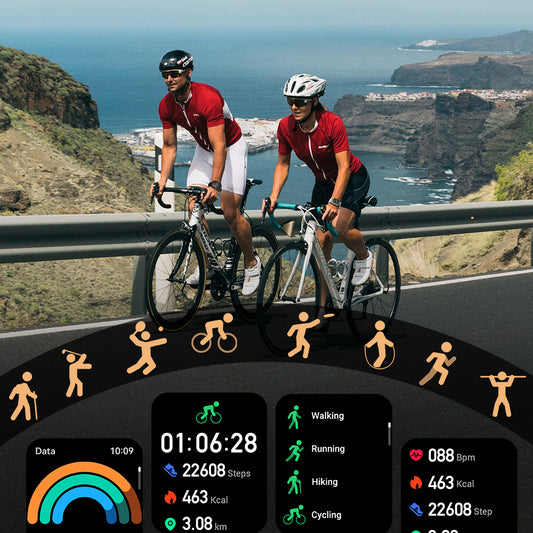 Support 100+ workout modes including swimming, cycling, mountaineering, running, etc., accurately recording workout data throughout the process.
