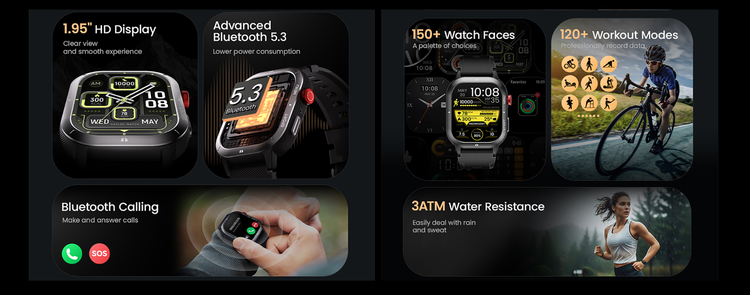 * 1.43" AMOLED Display* 9.8mm Slim Design* Bluetooth Calling* 30 Days Battery Life* 1ATM Water Resistance